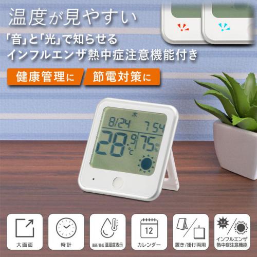 オーム電機 OHM 温湿度計 インフルエンザ熱中症注意機能 TEM-300B-W