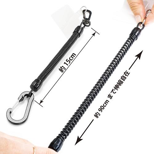 【SALE】フェイム企画 FMK 極太 バンジー スマホホルダー ストラップ 10mm コイル 軽量アルミ合金 カラビナ ブラック FMK-BST2297BK