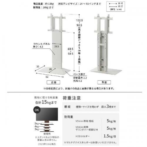 WALL V3ハイタイプ、ロータイプとは支柱の幅が異なります。オプションの棚板類はV3mini専用のオプションをお使い下さい。