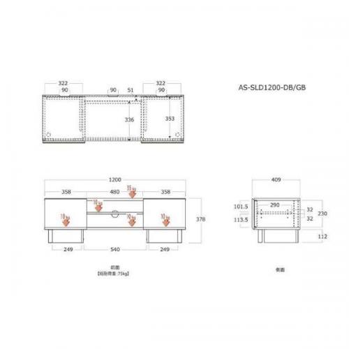 朝日木材加工 ~55V型対応 ローボード SLDシリーズ ダークブラウン AS-SLD1200-DB