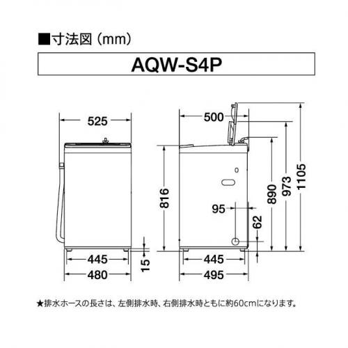 AQUA アクア 全自動洗濯機 洗濯4.5kg ホワイト系 AQW-S4P-W