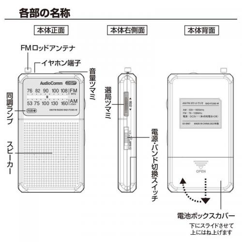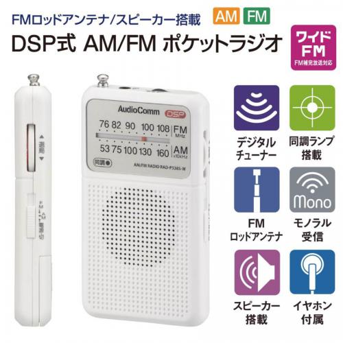 オーム電機 OHM AudioComm AM/FMポケットラジオ ホワイト RAD-P338S-W