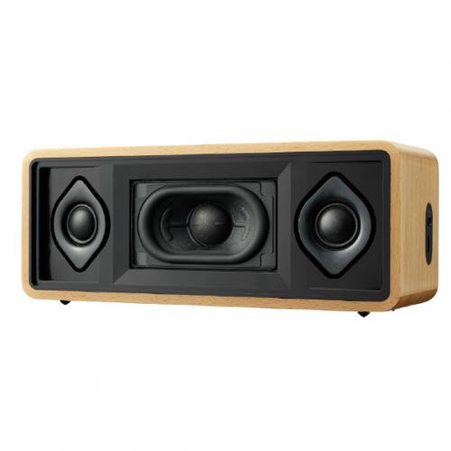 ●インテリアになじみやすい、天然木をスピーカー外枠に採用。