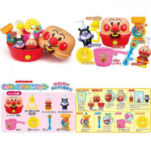 ケース(イス・洗面器)×1 アンパンマンボトル×1 ばいきんまんボトル×1 水車×1 手おけ×1 水ピス×1 泡立てスポンジ×1 持ち手兼タオルかけ×1