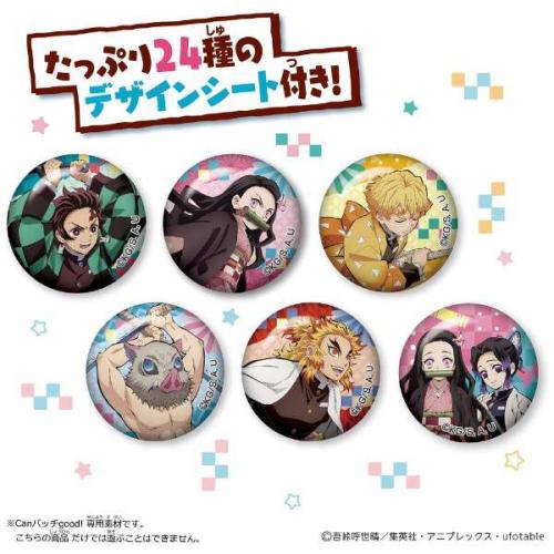20個のバッチ素材と、24種類の『鬼滅の刃』のデザインシートがセットになっており、別売のCanバッチgood!
