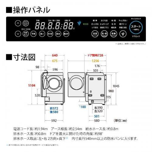●標準使用水量:洗濯時/84L、洗濯〜乾燥時/約54L