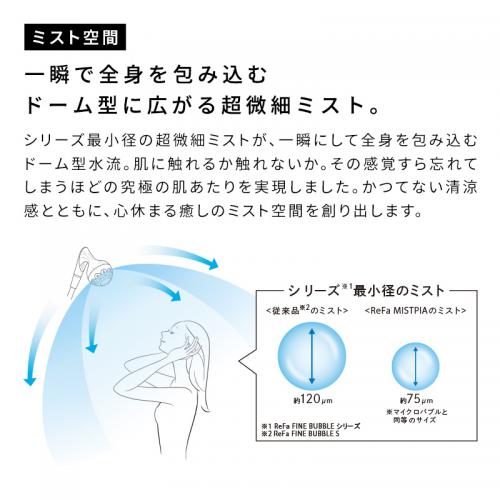 シリーズ最小径の超微細ミストが、一瞬にして全身を包み込むドーム型水流。