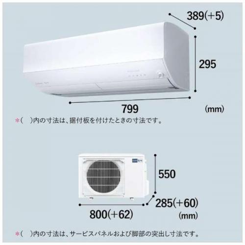 ・室外機:幅800(+配管カバー部62)×高さ550×奥行285(+脚部60)mm
