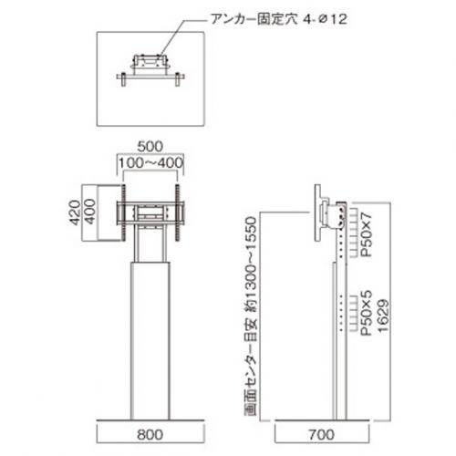 ●パネル内の直径12mm×4穴でアンカー固定での設置も可能。