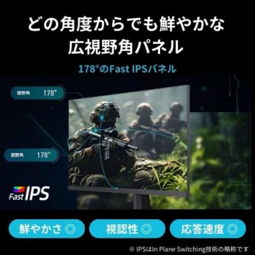 色鮮やかで広視野角なFast IPSパネルを採用。TNパネルと比較して角度による色やコントラストの変化が少なく、より鮮やかで表現豊かな映像を実現。