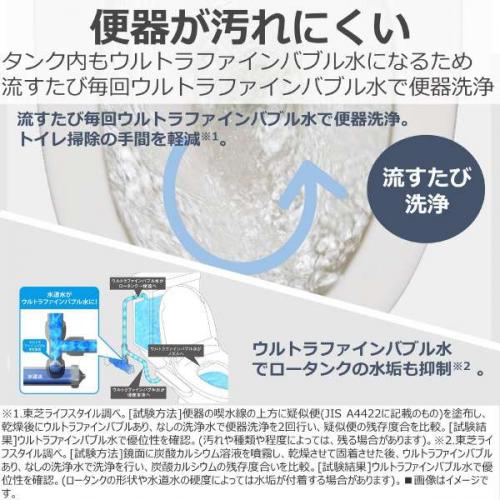 ウルトラファインバブル水をロータンクにも給水、ロータンクの水で便器を洗浄するときの汚れ落ちが向上。