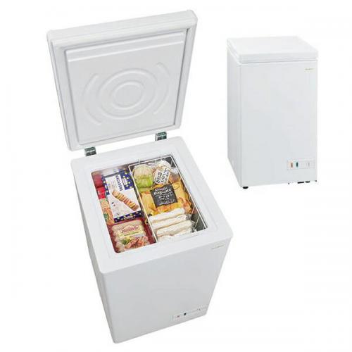 温度調整ダイヤルにより庫内温度:-18℃以下、急速冷凍機能、丈夫な金属ヒンジ、通電ランプ、バスケット付き。