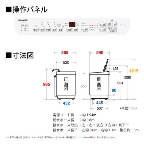 シャープ SHARP 縦型洗濯乾燥機 洗濯6.5kg 乾燥3.5kg ホワイト系 ES-TX6J-W