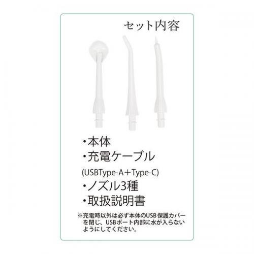 ■セット内容/本体、充電ケーブル(USBケーブル Type-C)、ノズル3種(舌クリーンノズル、標準ノズル、歯周ポケットノズル)、取扱説明書