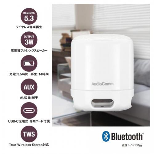 【SALE】オーム電機 OHM ブルートゥースラウンドスピーカー AudioComm 充電式 ホワイト ASP-W125N-W