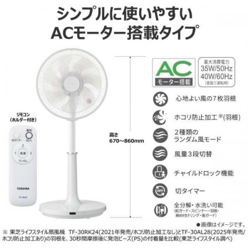 【SALE】東芝 TOSHIBA リビング扇風機 ACモーター搭載 30cm 7枚羽根 リモコン付き ホワイト TF-30AL28-W