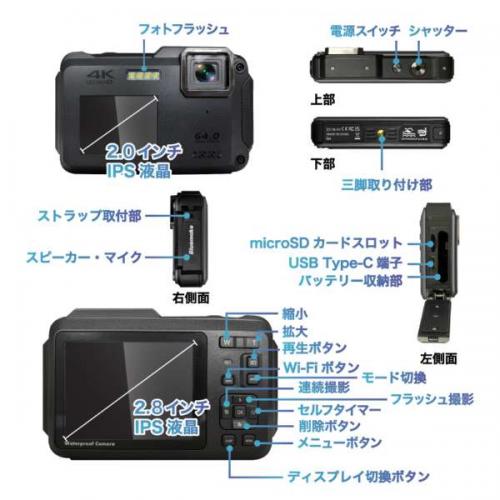 ブルーメイク Bluemake 防水コンパクトデジタルカメラ ブラック TT-WD1300B
