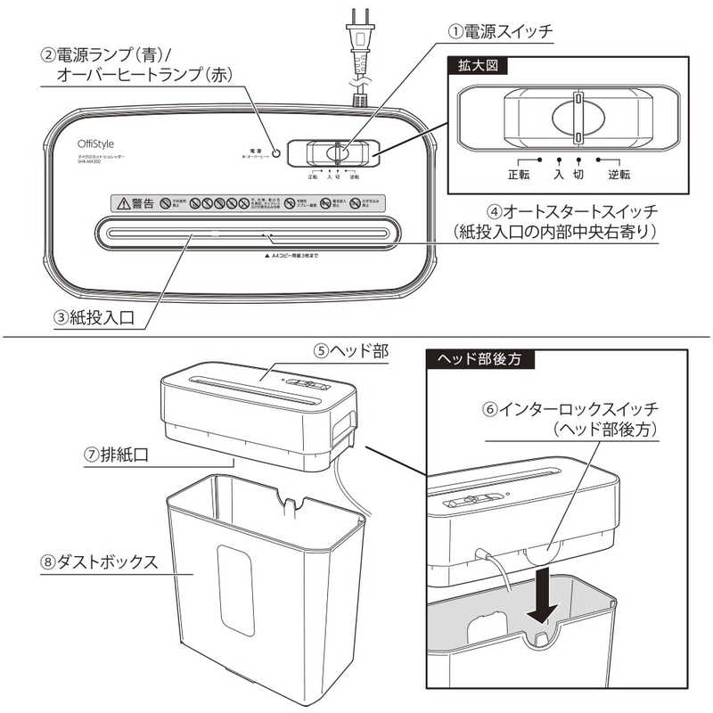 ●梱包内容:シュレッダー本体(ダストボックス含む)、保証書付取扱説明書