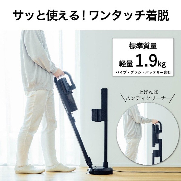 手前に引けばスティッククリーナー、上げればハンディクリーナーに。思い通りの使い方がワンタッチで選べます。