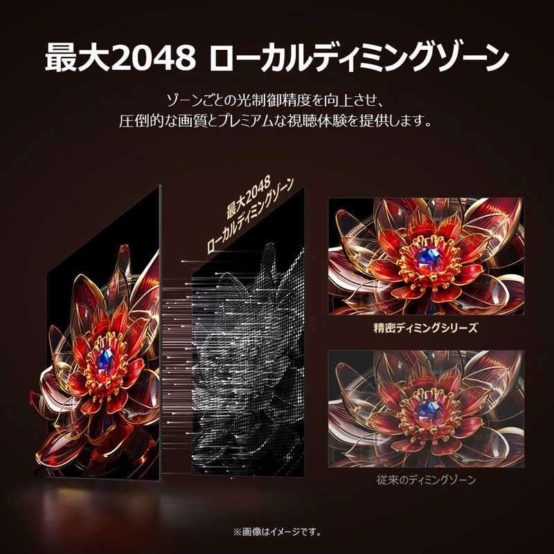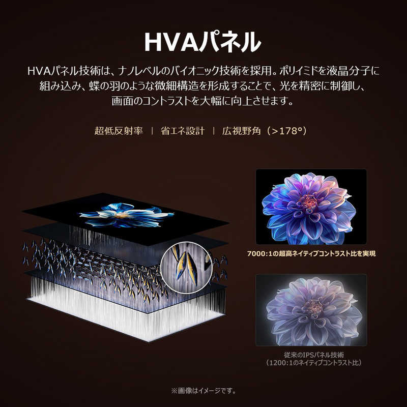 Mini LEDと量子ドット技術を組み合わせ、高輝度・高コントラストを実現。