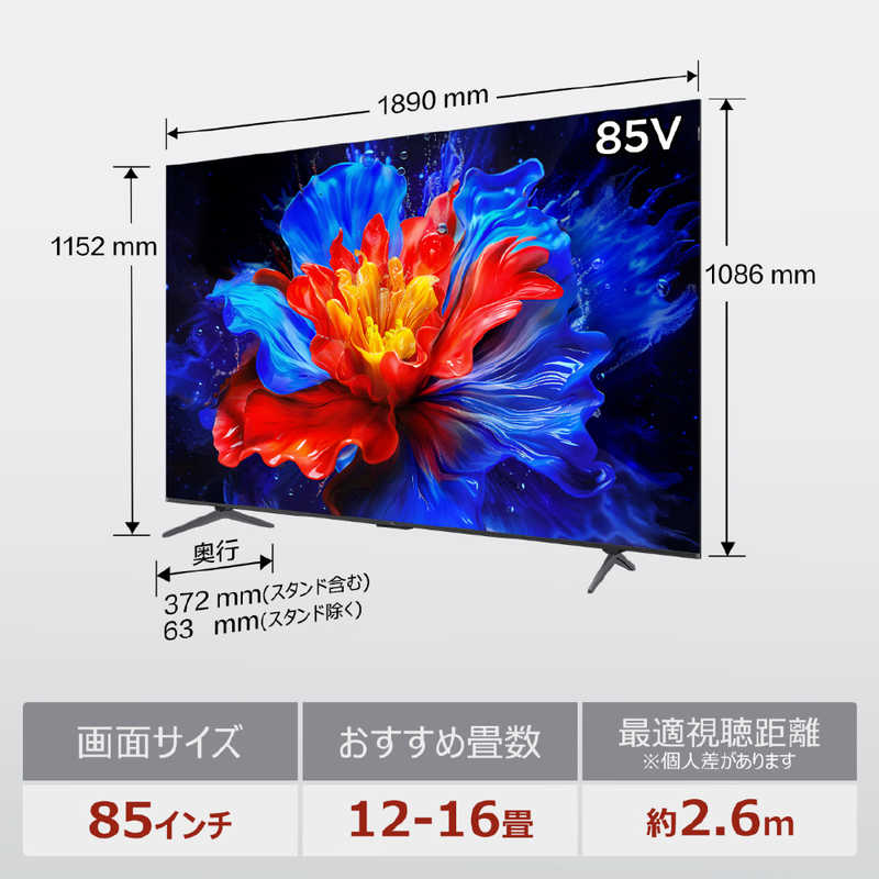 ティーシーエル TCL 4K量子ドット液晶テレビ P8Kシリーズ 85V型 85P8K(大型)