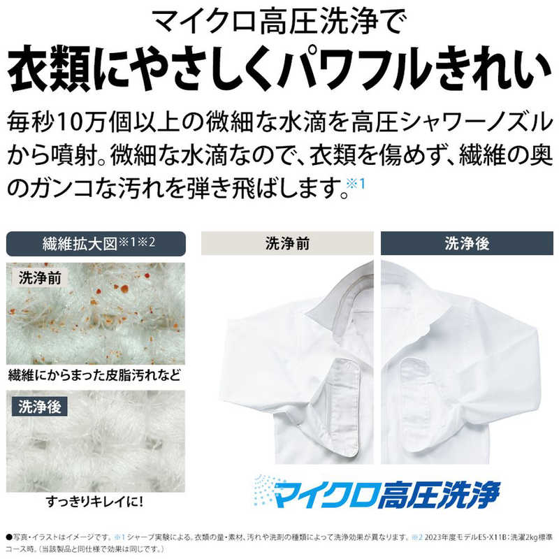 マイクロ高圧洗浄で、衣類の奥の汚れまでしっかり落とす。