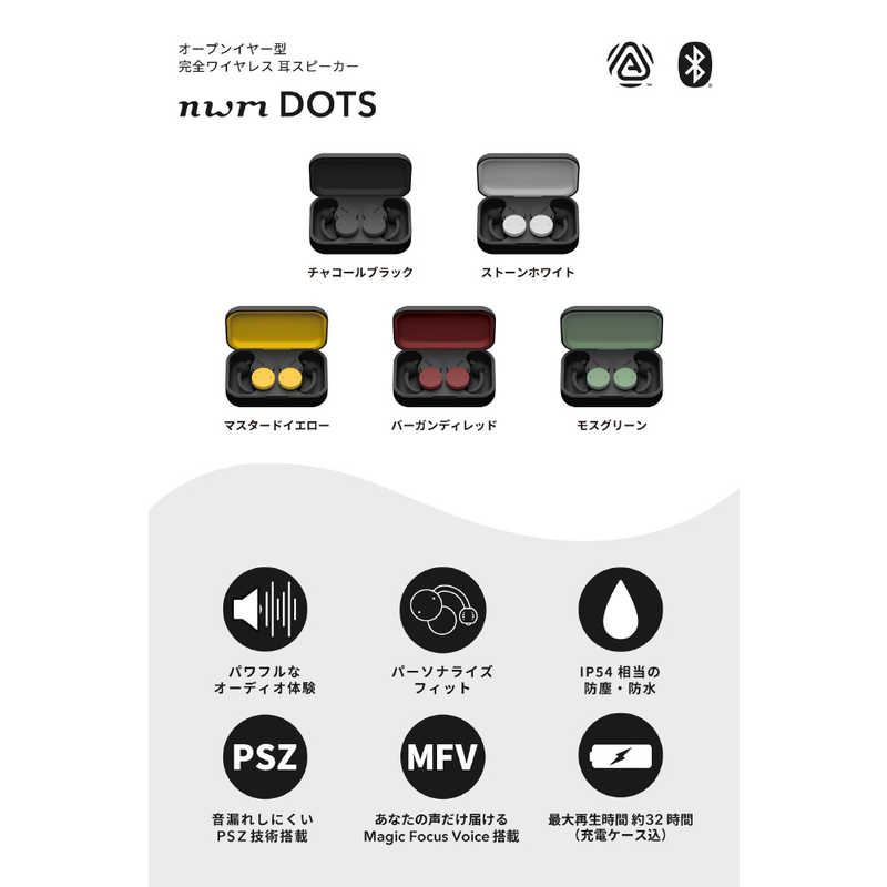 NTT独自の音響技術(PSZ/Magic Focus Voice)をダブル搭載した、耳を塞がない完全ワイヤレス型。