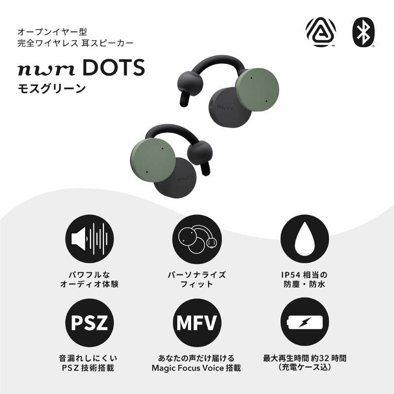 エヌティティソノリティ NTT Sonority 完全ワイヤレス耳スピーカー nwm DOTS モスグリーン MBE002GA