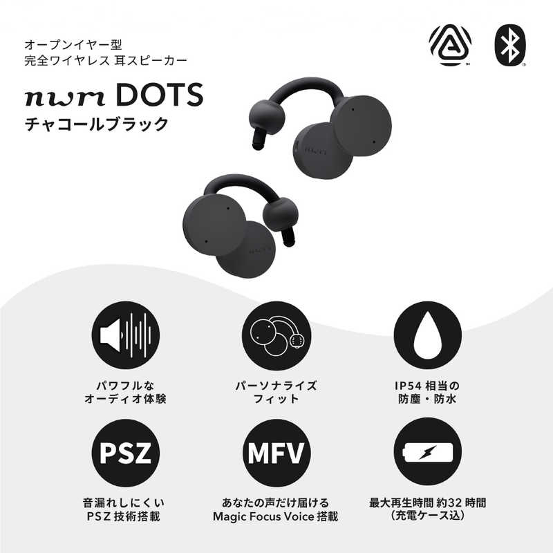 エヌティティソノリティ NTT Sonority 完全ワイヤレス耳スピーカー nwm DOTS チャコールブラック MBE002KA
