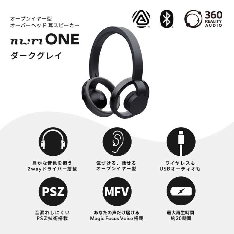 エヌティティソノリティ NTT Sonority ブルートゥースヘッドホン nwm ONE ダークグレイ MBH001KA