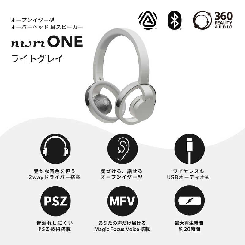 エヌティティソノリティ NTT Sonority ブルートゥースヘッドホン nwm ONE ライトグレイ MBH001WA
