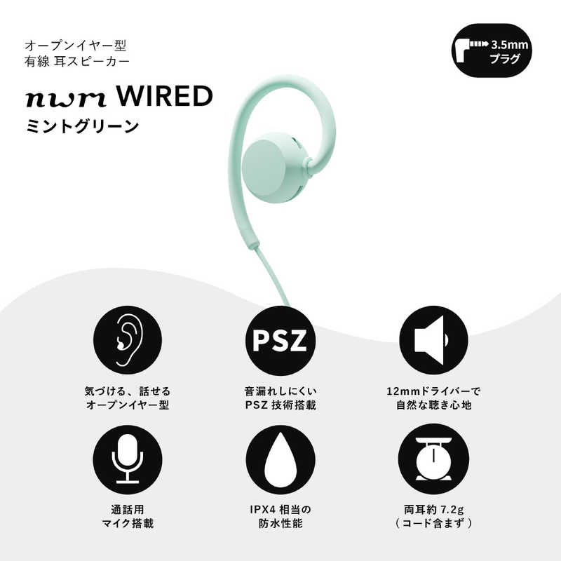 エヌティティソノリティ NTT Sonority 有線耳スピーカー nwm WIRED ミントグリーン MWE006GJ