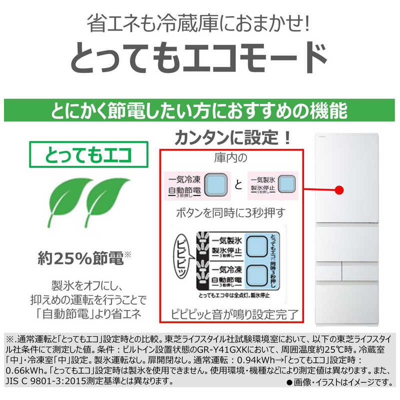 東芝 TOSHIBA 冷蔵庫 5ドア 411L 左開き VEGETA ベジータ GXKシリーズ グランホワイト GR-Y41GXKL-EW (大型)