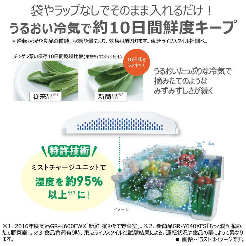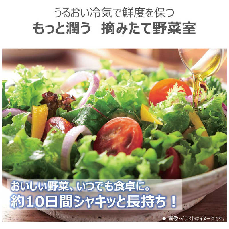 ● 丸ごと野菜も使いかけ野菜も約10日間新鮮保存「もっと潤う摘みたて野菜室」。