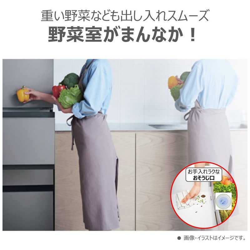 ● 野菜室が「まんなか」にある使いやすさに加えて「お掃除口」があり、清掃も簡単に