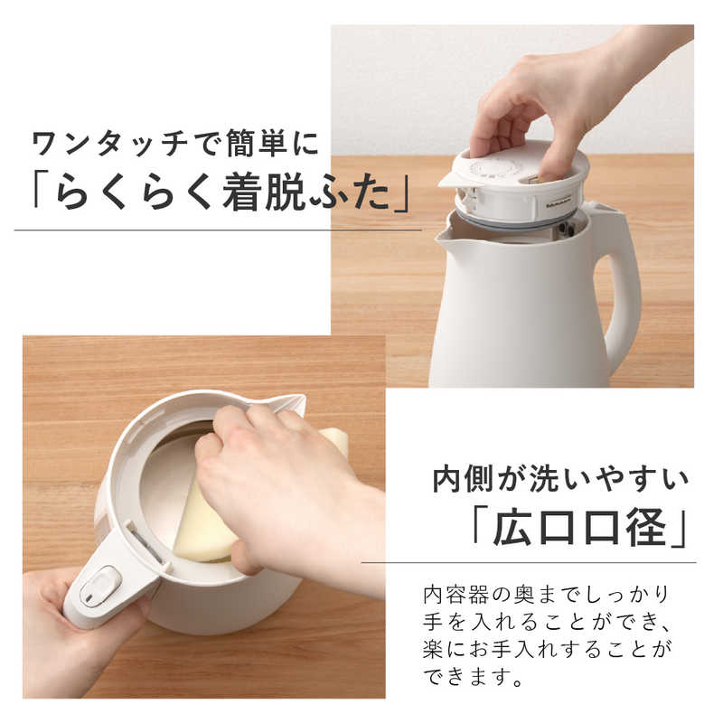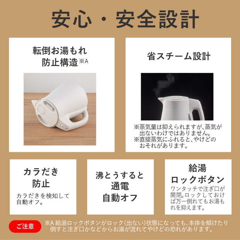 ■容量:1.5L ■機能:蒸気レス構造、転倒流水防止、二重構造 ■カラー:オフブラック