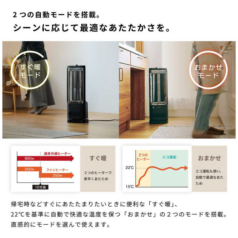 ■タイプ:ハロゲンヒーター ■機能:遠赤外線、速暖性、自動OFF ■カラー:ブラック