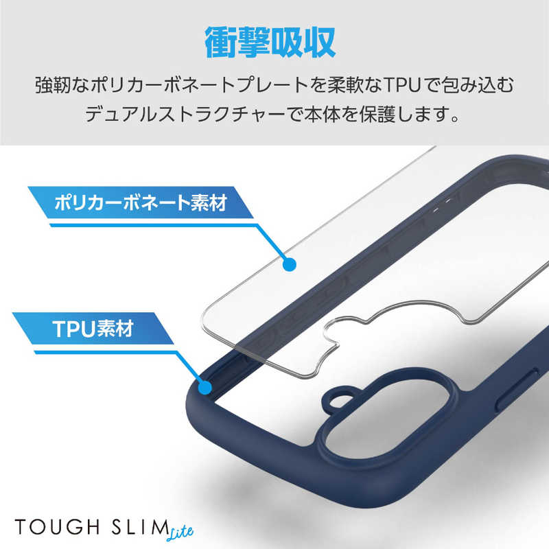 エレコム ELECOM iPhone 16 ハイブリッドケース TOUGHIM LITE フレームカラー ネイビー PMA24ATSLFCNV