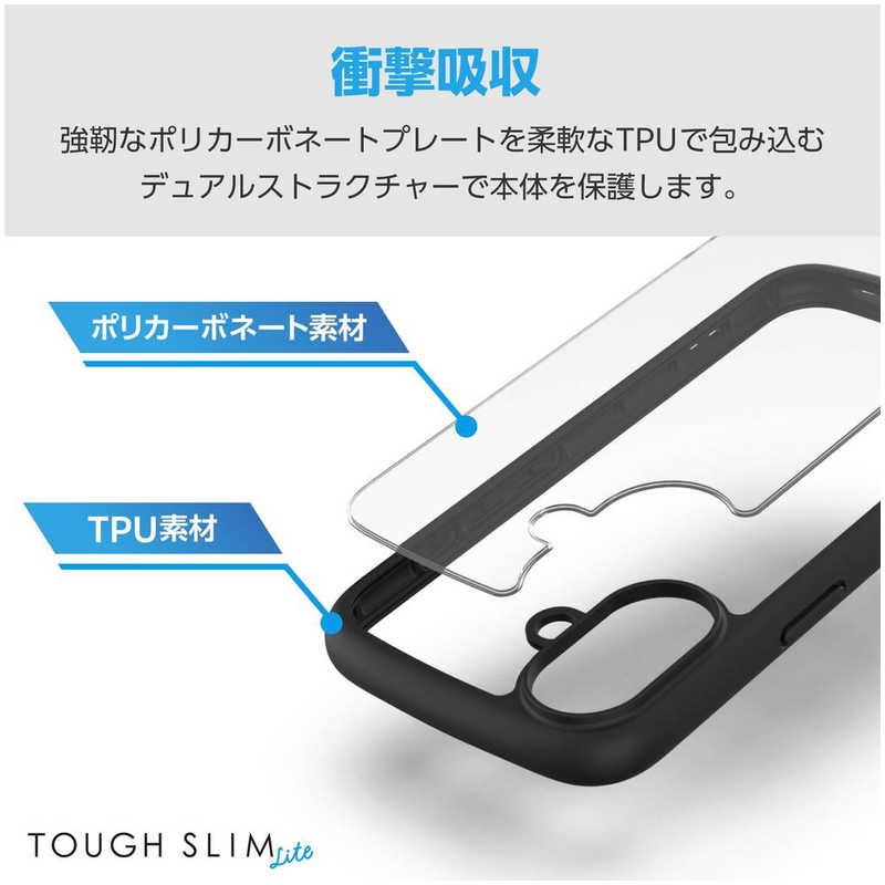 エレコム ELECOM iPhone 16 Plus TOUGHIM LITE フレームカラー ブラック PMA24BTSLFCBK
