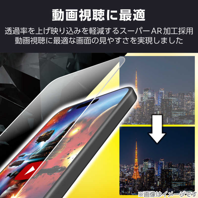 ■スーパーAR加工により透過率をアップ。動画視聴の際などに光の映り込みに邪魔されずに視聴することができる、Gorilla(R)ガラスを採用した超透明タイプの画面保護ガラスフィルムです。