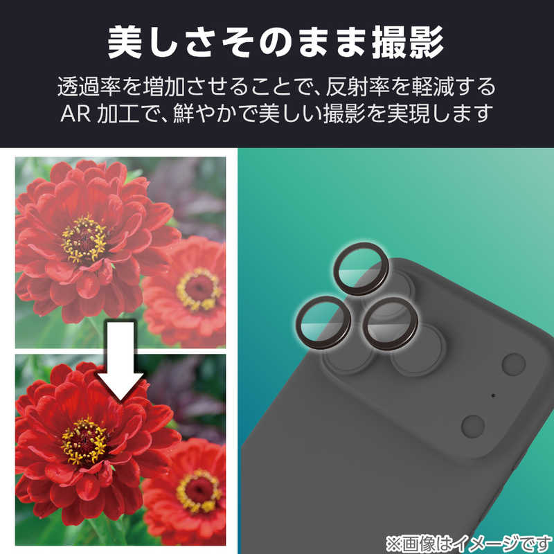 エレコム ELECOM iPhone 17 Proレンズフィルム カメラレンズガラスフィルム 超透明 ブラック PM-A25CFLLGARBK