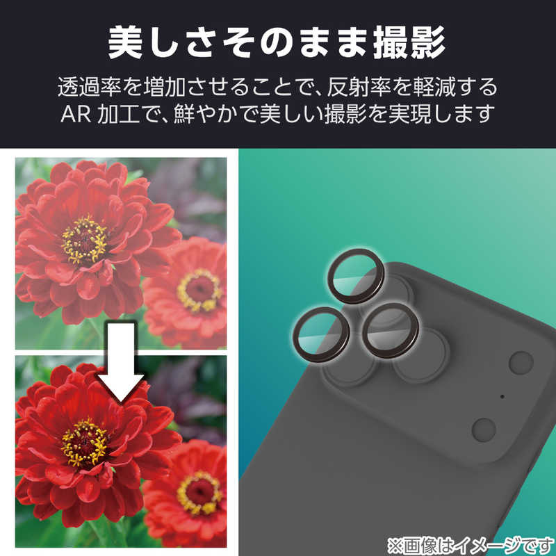 エレコム ELECOM iPhone 17 Proレンズフィルム カメラレンズガラスフィルム ブラック PM-A25CFLLGBK