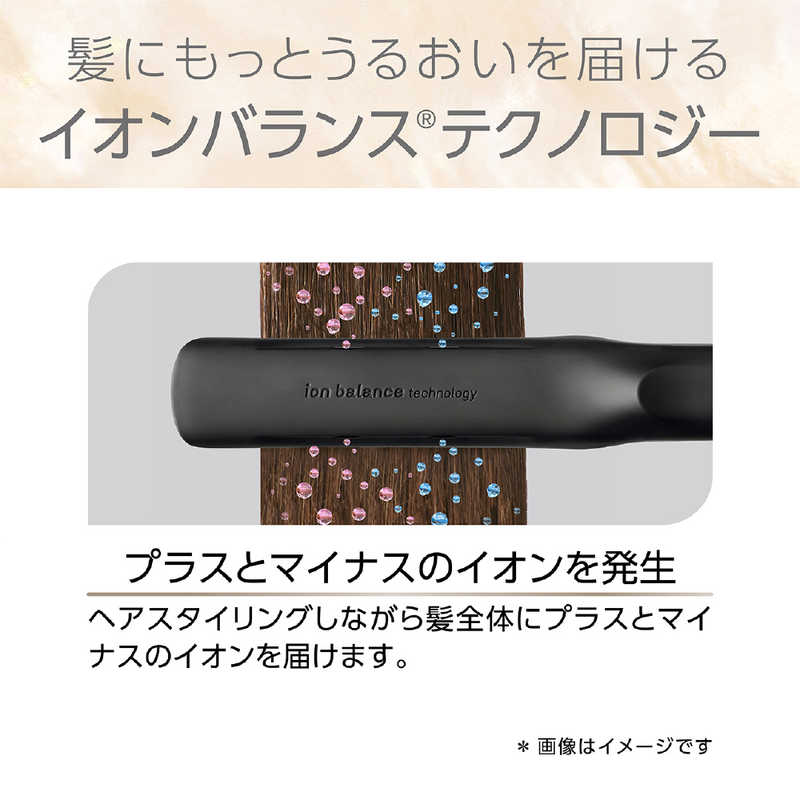 ●水分蒸発を抑えるシルキーモイスト加工、上下の動き+左右の傾きが変化し髪にフィットする3D密着プレート静電気を中和し、滑らかな髪へ導く「イオンバランステクノロジー」