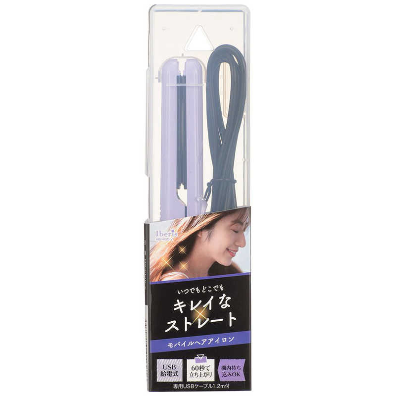 オーム電機 Iberis ストレートアイロン Iberis モバイルヘアアイロン 13mm 200℃ USB給電式 ヴァイオレット HB-HIUD-V
