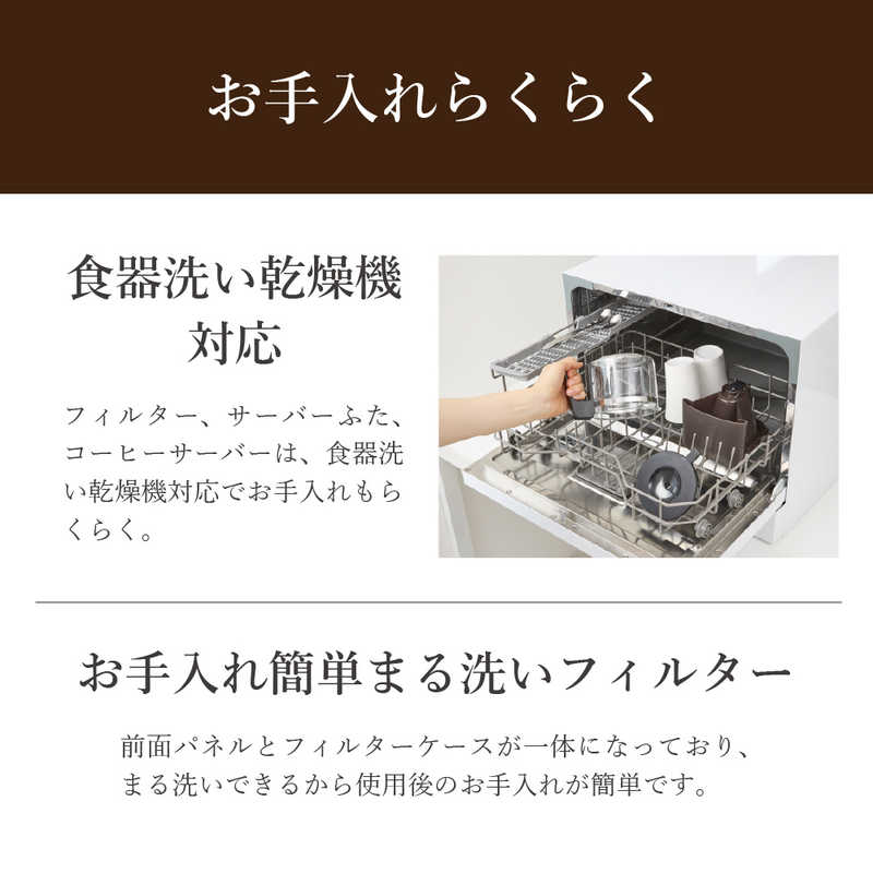 ●食器洗い乾燥機対応 テイストマイスター、フィルター、サーバーふた、コーヒーサーバーは、食器洗い乾燥機対応でお手入れもらくらく。