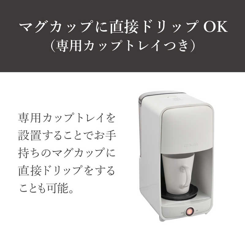 ●マグカップに直接ドリップOK(専用カップトレイつき) サーバーにドリップする以外にも、専用カップトレイを設置することでお手持ちのマグカップに直接ドリップをすることも可能です。
