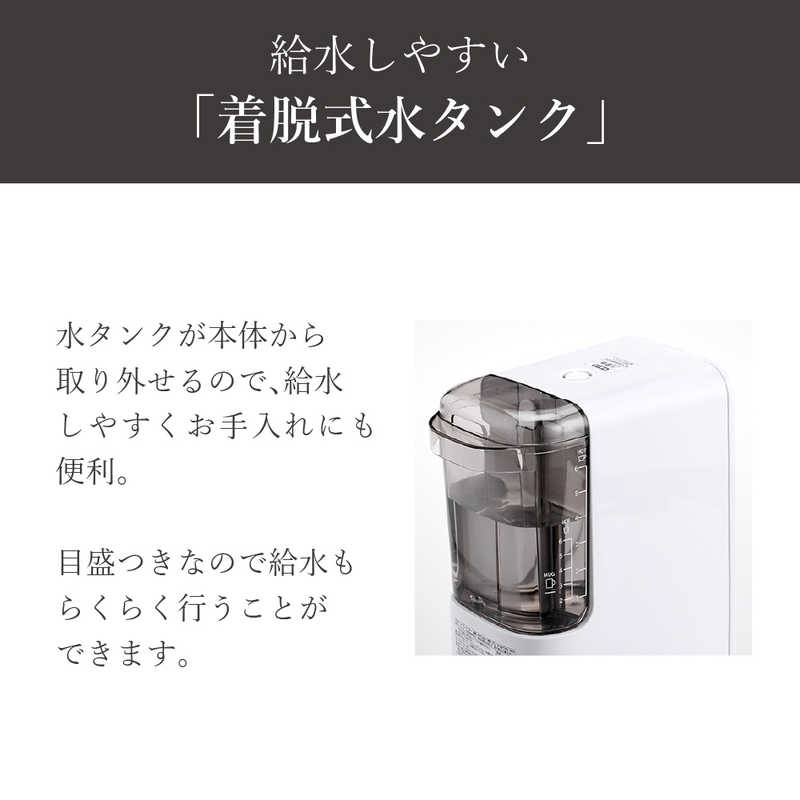 ●給水しやすい「着脱式水タンク」 水タンクが本体から取り外せるので、給水しやすくお手入れにも便利です。
