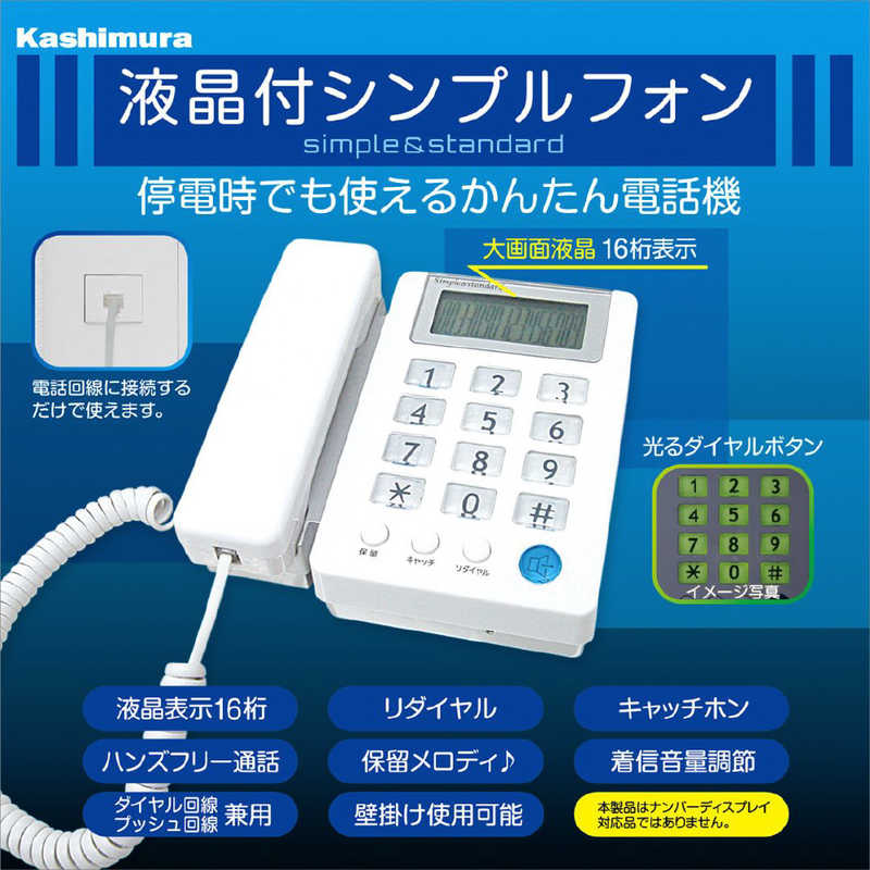 カシムラ 電話機 ノーマル液晶付電話機 子機なし SS-08