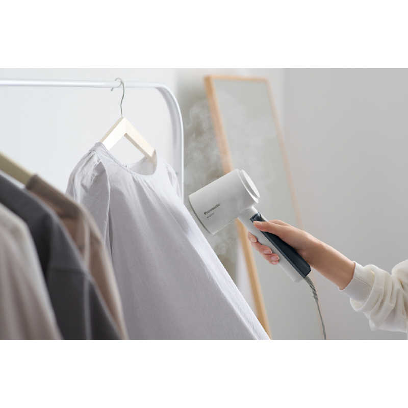 繊維についてしまったニオイや菌を、スチームの力で脱臭(※1)・除菌(※2)。※1 脱臭効果(当社調べ) 【試験依頼先】パナソニックホールディングス(株)プロダクト解析センター 【試験成績書番号】H24YK022 【試験対象】生乾き臭・ペット臭・加齢臭(ノネナール)・汗臭・タバコ臭・飲食臭(焼肉・焼き魚) 【試験方法】ニオイをつけたウールの生地に約10秒間スチームをあて、脱臭効果を6段階臭気強度法にて評価 【試験結果】対象臭気それぞれにおいて、有意な臭気抑制効果を確認 【試験対象】防虫剤臭(樟脳) 【試験方法】ニオイをつけたウールの生地に約10秒間スチームをあて、脱臭効果をガスクロマトグラフィー質量分析法にて評価 【試験結果】対象臭気において、有意な臭気抑制効果を確認。※2 除菌試験内容 【試験依頼先】(一財)日本食品分析センター 【試験成績書発行番号】第24089586001-0101号 【試験方法】1 cmの距離からスチームをあてた、菌付着布の除菌確認 【試験結果】99 %の除菌効果(試験は2種類の菌で実施)