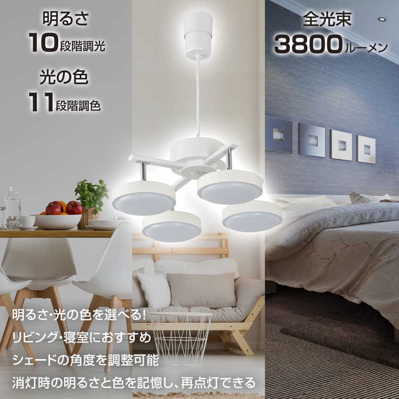 オーム電機 OHM LED4灯ペンダントライト 8畳 ホワイトウッド LT-YLP4RC-W